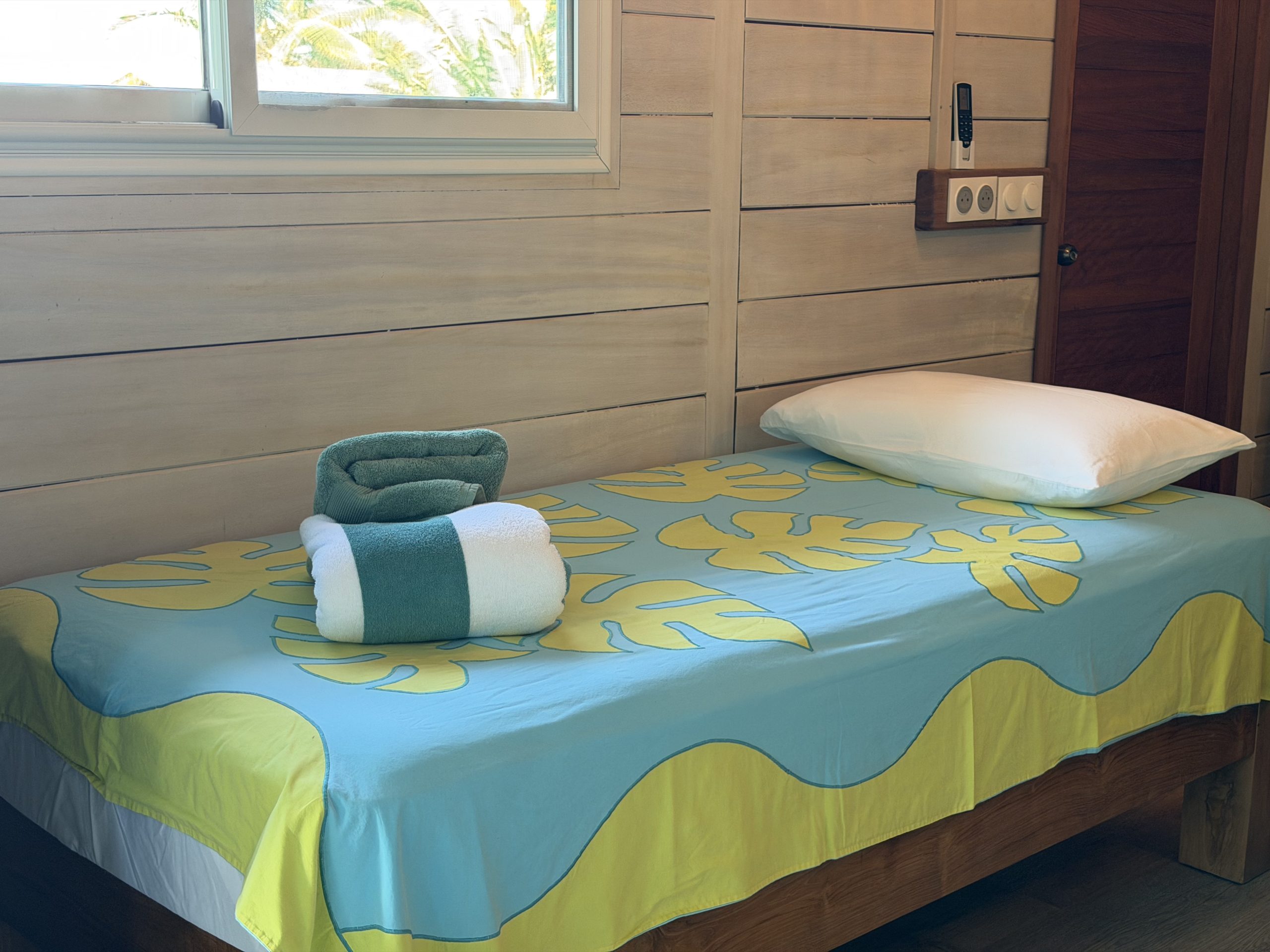Le bungalow Hipu, au bout du jardin, avec son arbre à pain juste en face de la terrasse, saura vous apporter toute l’intimité dont vous avez besoin.