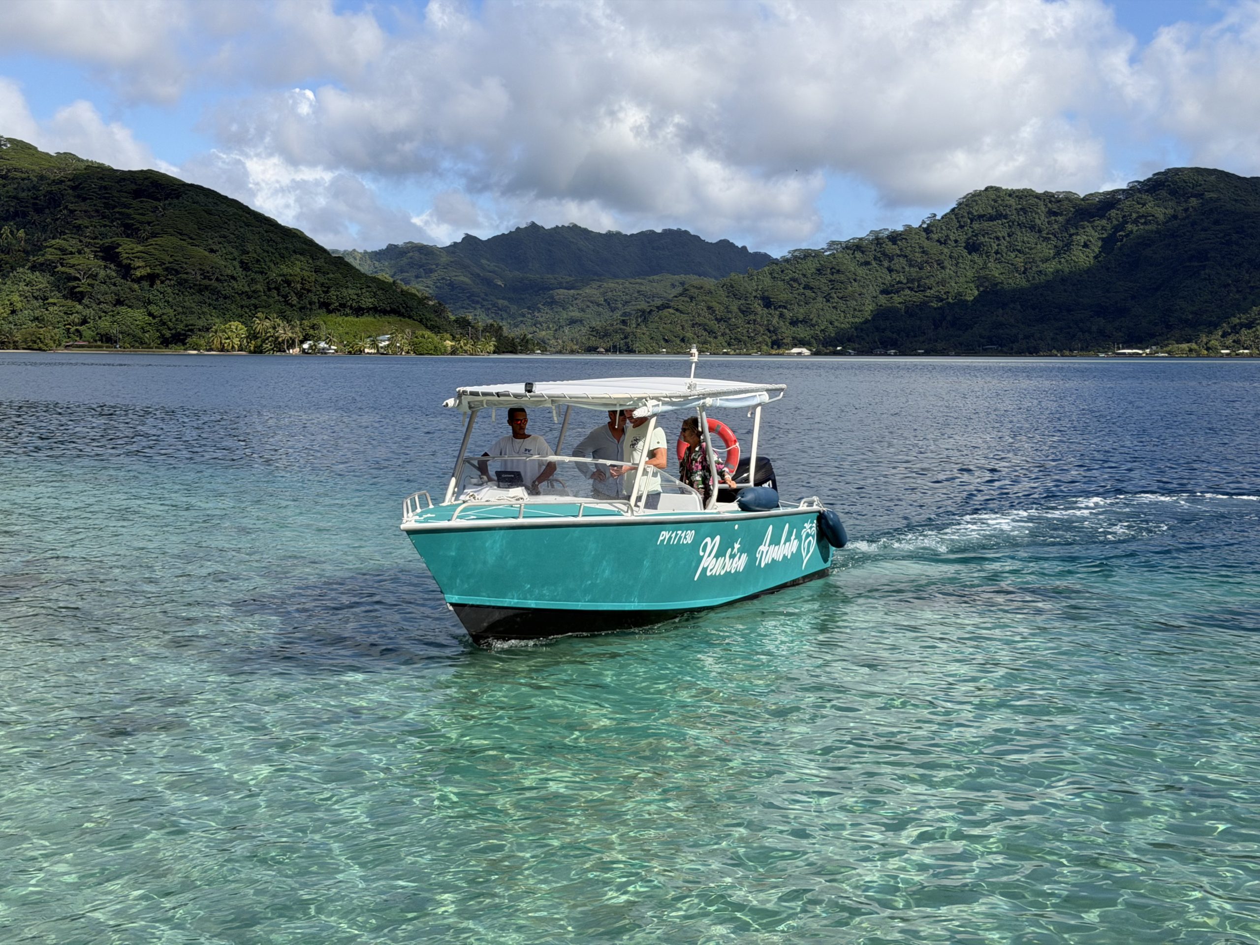 On vient vous récupérer avec notre bateau privé directement à l’aéroport de Raiatea, au quai de Tapuamu si vous arrivez en ferry, ou au quai de Vaito’are si vous venez avec les petites navettes.